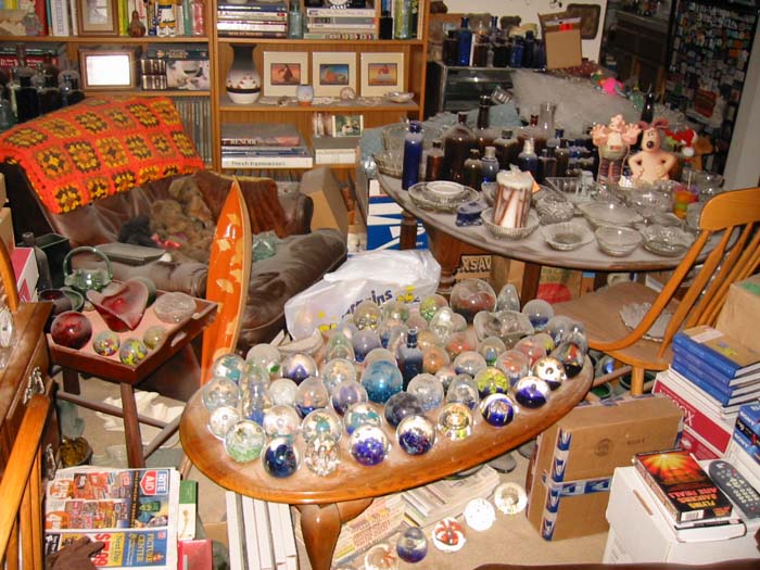 two broken bottles back there somewhere that have fallen but there's noway to get back there to clean them up. I'm assured all this stuff in