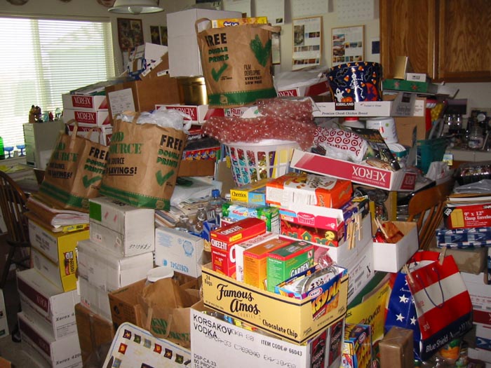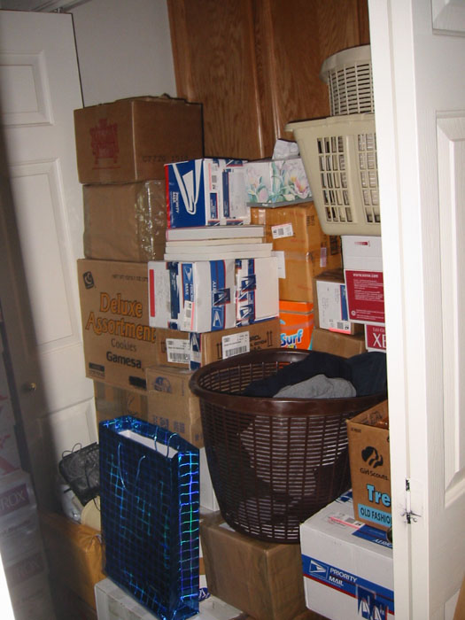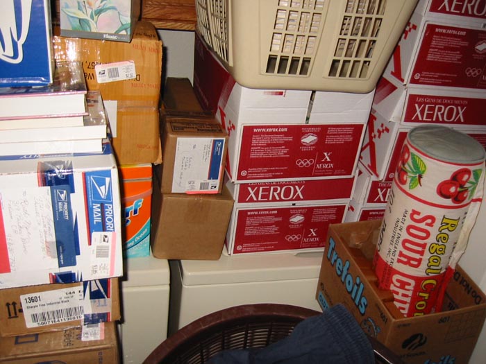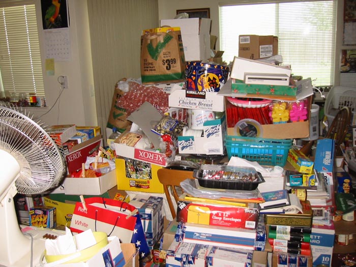 My mom's shirt pile. There's no accessable drawers in the room, so this