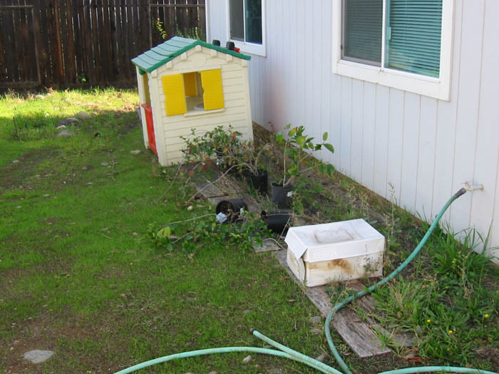 The backyard. My mom didn't have it landscaped to save money, and now it